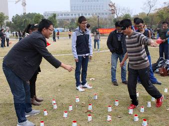 午後的陽光灑向河海校園,給這寒冷的冬天帶來濃濃的暖意,來自10個學院的參賽隊伍早已在西操場躍躍欲試,本次趣味運動會共有8個比賽項目,分别是地雷陣、鬥轉星移、翻雲覆雨等。兩點整,比賽正式開始,各個參賽者都奔向了指定的比賽場地,臉上寫滿了緊張和激動,誓要給各自學院争光。