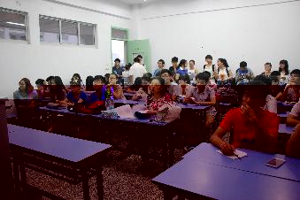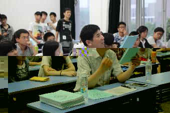 答辯于傍晚開始,傍晚的天氣依然延續白天的悶熱。同學們都十分重視此次答辯,有的甚至穿了正裝前來。早到的同學們都已坐在答辯的教室裡,教室很快就被坐滿,晚到的同學隻能等在外面。大家都在開始前積極做準備,有的在仔細閱覽申請書,完善自己的措辭;有的則在和組員認真探讨答辯細節,希望答辯的每一個環節都能做到完美。