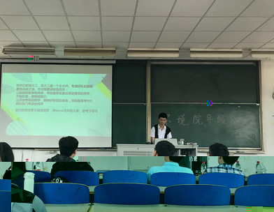 本次年級大會于4月19日下午三點五十在緻用201舉行,會議由金意倩老師主持。此次年級大會專門為同學們請來了優秀的14級學長學姐就關于未來大四保研、考研、就業、考公務員、出國各方面傳授經驗,并解答同學們提出的問題。