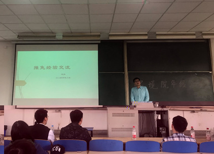 關于保研方面,有惠辭章學長、李鵬學長和沈國宸學姐給同學們分享經驗。惠辭章學長從學校保研的條件、應做的準備、以及于保研相關的規劃與時間安排等方面詳細地給大家做了介紹。李鵬學長從獲得推免資格、錄取途徑與方式、時間節點、信息獲取四個方面來與大家進行推免經驗交流。沈國宸學姐從保研的準備工作說起,如大二大三績點的提升、專業知識的儲備、學有餘力時的加分項和各個學校研究生院保研招生信息等,然後傳授了一些面試的經驗,如保持自信,自我介紹的PPT要簡潔大方等,同時告訴大家學習能力、科研能力和學生身上的潛力是老師的關注重點。