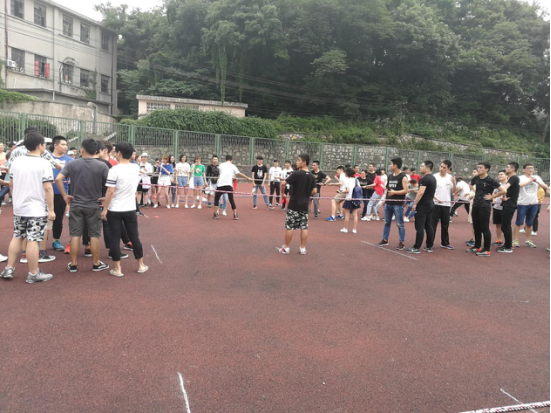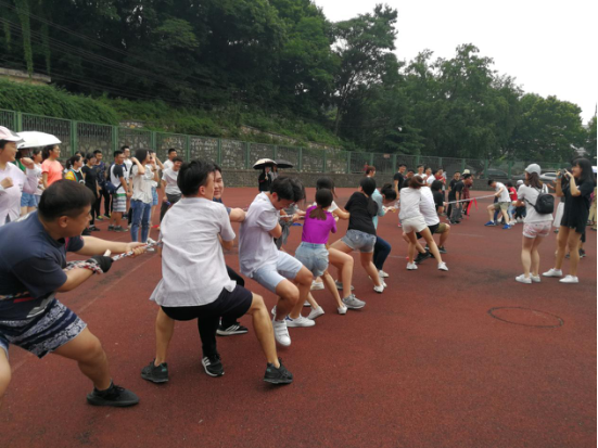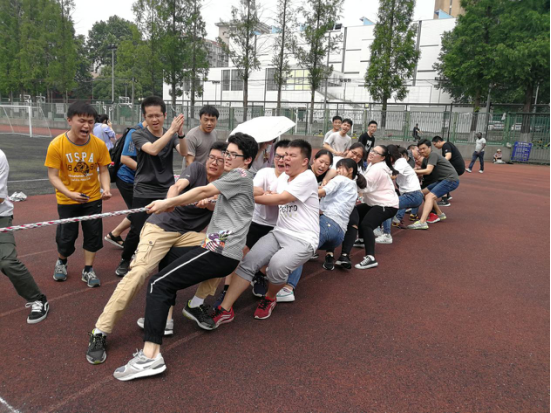 兩點十六分,随着裁判的一聲哨響,比賽正式拉開序幕。“一!二!一!二!”每個班級每位隊員都使出渾身力氣把繩子向後拉,繩子中間的紅線左右搖擺。從照片上看得出每個人都全身心投入在比賽中,為了班級集體榮譽而拼盡全力。一旁呐喊助威的同學們熱情更甚,加油聲此起彼伏,在比賽結束後立刻送上水,給隊員們揉肩捏手為下一場比賽做準備。