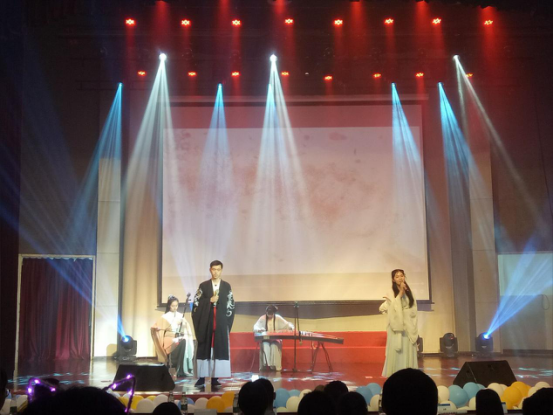 時光飛逝,很快晚會迎來了第三部分——似水年華。由14級環科一班的同學們帶來的古典音樂演奏《涼涼》,其聲嗚嗚然,如怨如慕,如泣如訴,餘音繞梁三尺,令人心馳神往。