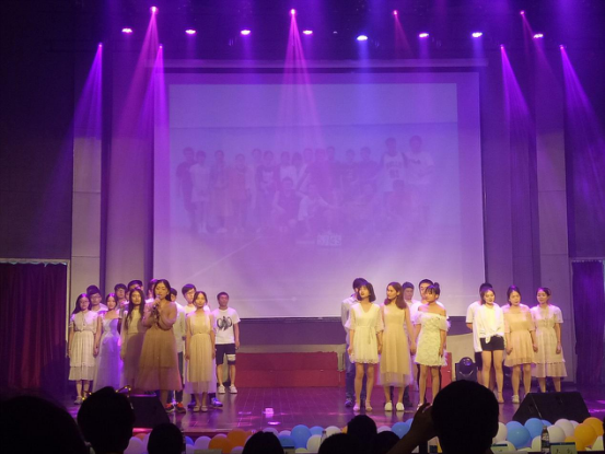 最後,是14級給排水4班的同學們帶來的節目《追憶“四水”年華》。同學們身着大一軍訓時的迷彩服,踢着正步,受着教官的指教。這些場景都曆曆在目。溫昕同學也在追光燈下獨舞一段,十分精彩。男生們表演了輪滑、投籃等校園裡的活動,最終大家一起在班級精心制作的紀念視頻下,完成了活力十足的齊舞與合唱。