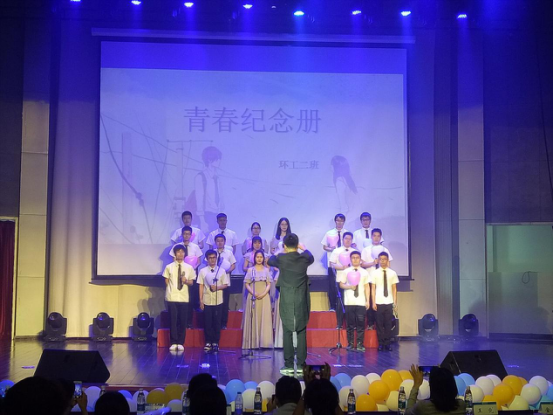 接下來,就是本場晚會的主角們——18屆伟德国际1946bv官网的畢業生們的主場。首先登上舞台的是14級環境工程專業2班的同學們。《青春紀念冊》在同學們充滿朝氣的演唱下,仿佛将我們拉回到四年前,離家形單影隻的我們,懷着對自由的渴望和未來的憧憬,擁抱河海。