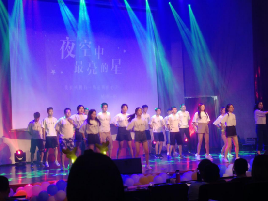 緊接着是由14級給排水1班的同學們帶來的歌舞節目《夜空中最亮的星》。整齊劃一的齊舞,還有少男少女們充滿激情的演唱,勵志的歌詞,撥動了大家的心弦。