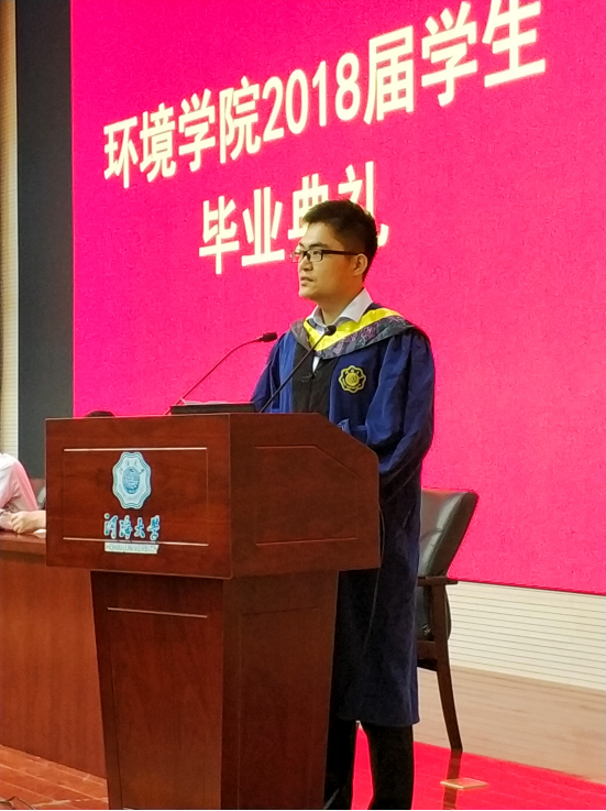 接下來,畢業生代表上台發言,代表全體畢業生感謝學校、學院以及各位老師對自己的栽培,感謝家長們的悉心照顧,感謝同學們之間的互幫互助。