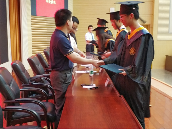 最後由黨委書記笪學軍宣讀校友聯絡人,聘請惠辭章等7名同學擔任2018屆校友工作聯絡員,希望校友工作聯絡員在畢業之後,認真履行工作職責,保持與母校、學院以及同學之間的聯系,主動開展校友聯誼活動,為母校事業發展和校友工作貢獻力量。在場領導分别為優秀畢業生代表、校友工作聯絡員頒發榮譽證書和聘書。