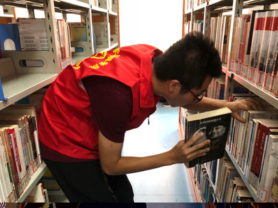 在整理圖書的過程中,志願者都放輕了動作,生怕打擾到圖書館内正在認真閱讀的人們。但仍有幾位讀者注意到這些優秀的“紅馬甲”們,并向他們投去了贊賞的目光。