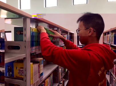 兒童區是整理圖書工作最為繁忙的區域。志願者們在擺放圖書的同時還要協助小朋友借閱圖書。由于小朋友們大多不懂得還書規則,志願者們整理的工作量就大大增加了。成套的書籍常常雜亂地擺放在一起,需要志願者們一本本抽出,再重新排序。即使已經工作了許久,志願者們也沒有懈怠,穿梭在書架與讀者之間。他們像一陣暖風,經過之地的圖書都整齊地排放,使得讀者們的借閱也更加輕松快捷。