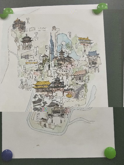 經過多日努力,來自各學院的11位參賽選手帶着自己精心準備的繪畫作品來到決賽現場。通過PPT講解,選手們闡述了自己繪畫作品的創作思路與内在深意,并為在場的所有評委與觀衆展現了他們心中所思的故鄉。其中,2号選手傅語心采用素描與水彩相結合的方式,畫面細緻淡雅,為觀衆展示了身為六朝古都的南京獨有的文化之美。她的作品《文化南京》給評委與觀衆留下了深刻的印象。梁雨嘉同學帶來的作品《廣西美食地圖》色彩絢麗、搭配合宜,給人強烈的視覺沖擊。蔣居鐘同學所作的《思蜀道》,以其紮實的畫功、巧妙的構思獲得了評委們的一緻好評。程熙媛同學的《建築中的哈爾濱》以其精雕細刻的建築圖獲得了評委的贊許。龔曉芳同學的《廣東印象》以其清新淡雅的畫風吸引觀衆。魏岱雯同學的《塞外明珠,山水梨城》為衆人展現了不一樣的新疆。所有參賽選手的作品都展現出了家鄉的獨特美,給在場的所有評委與觀衆帶來了一場視覺盛宴。