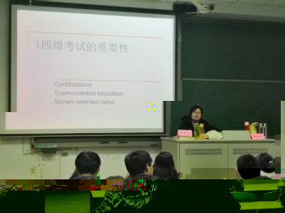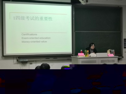 在主持人的簡單介紹後,黃老師便在同學們熱烈的掌聲中走上講台,并開門見山的提出了今天講座的三個主要内容:考四級的重要性、為什麼要考四級、怎麼考四級。