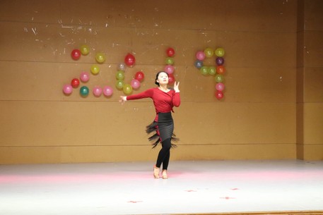 再之後,便是由管培11組和28組帶來的特長表演《拉丁舞》,一出場便赢得陣陣掌聲。小組成員優美的舞蹈加上有些醉人的燈光,讓人不覺慢慢沉醉其中。突然燈光一閃,音樂一變,緩慢的音樂變換成動感的拉丁,場下更是傳來陣陣歡呼聲。