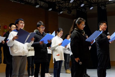 由管培5組、9組帶來的大合唱名為《陪你走過紙短情長的夢》,這是小組成員們精心挑選、組合起來的串燒歌曲,表達了對同學們的元旦祝福。台下的同學們在悠揚的歌聲下閉起雙眼,用心體會着每一句歌詞的寓意。