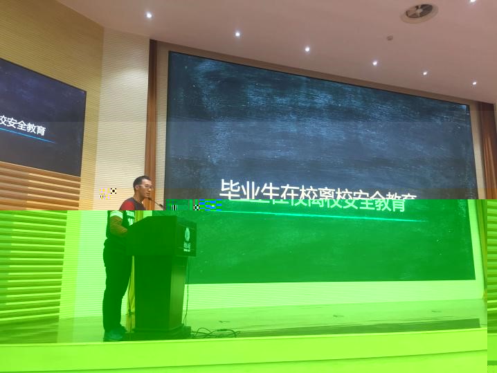 在大會上錢林皓主要從人身安全、财産安全、食宿安全、交通安全、求職安全等幾大方面為大家進行講解,提醒畢業生要注意在校、離校安全。這幾分鐘的講解,不僅僅是對畢業生的告誡和提醒,更滿載着對衆多畢業生能夠安全開心畢業的期望。