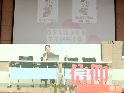最後是2018年獲得“海韻風華”稱号的李鼎新同學。她向學生們講述了她大學經曆的溫暖故事,也特别提到了舍友之間應坦誠相待,營造良好的宿舍關系。