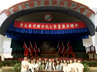 随後,一行人參觀了中央大禮堂,中國共産黨第七次全國代表大會就是在此隆重召開。大會制定了新階段中國共産黨的路線方針,為抗日戰争和新民主主義革命在全國的勝利做了充足的準備。
