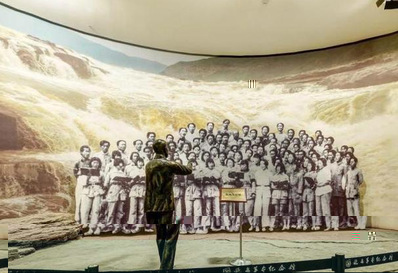 在延安文學藝術展示處,展示有剪影與《黃河大合唱》,講解員帶領同學們合唱了黃河大合唱,歌唱完的同學們心情澎拜,倍感振奮。