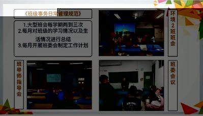 為保證班級的良好運作,團支部設置有詳細的班級管理制度,例如:大型班會一學期兩到三次,對班級的學習情況以及生活情況進行總結,為班級同學提供合理的建議,促進班級同學之間互相了解;定期開展團委會,分配相應的工作,了解彼此工作近況。