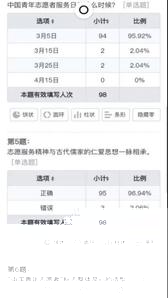 在觀看視頻之後,同學們認真完成了試題問卷。從反饋結果可以看出,同學們對視頻中的基礎知識掌握程度較高,主要問題出現在對國家在志願服務方面的認識尚不完善,但總體完成度良好,正答率均在85%以上。