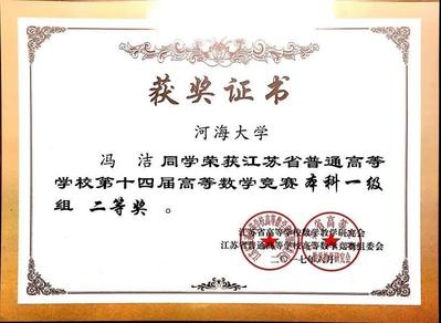 利用課餘時間積極參加各項學科競賽,先後獲得:江蘇省普通高等學校第十四屆高等數學競賽本科一級組二等獎、第九屆全國大學生數學競賽(非數學類)江蘇賽區三等獎、2018年第十五屆五一數學建模競賽三等獎等。