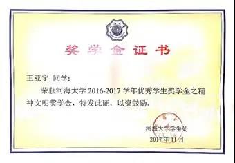 3.河海大學2016-2017學年優秀學生獎學金之“精神文明”獎學金