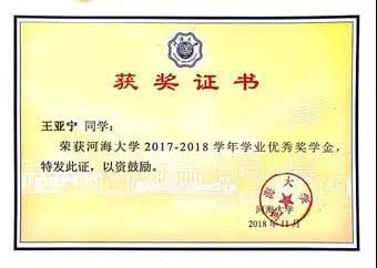 4.河海大學2017-2018學年優秀學生獎學金之“學業優秀”獎學金