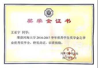 1. 2016-2017學年河海大學“優秀學生标兵”榮譽稱号