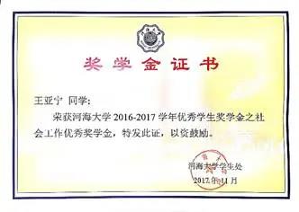 2.河海大學2016-2017學年優秀學生獎學金之“社會工作優秀”獎學金