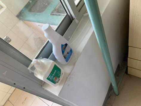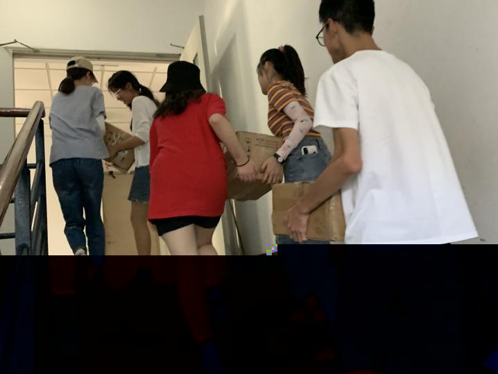 (助學導師為2020級新生搬運免洗洗手液與除黴噴霧)