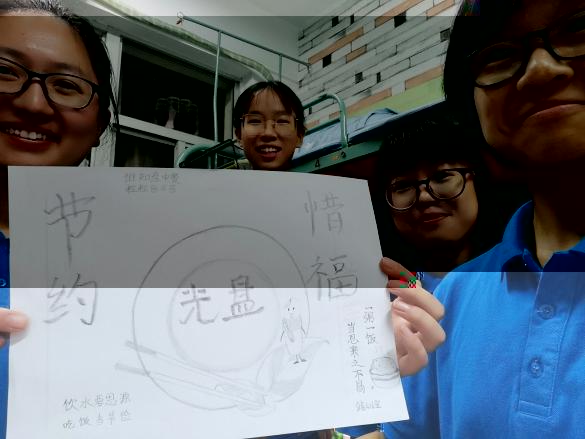 講座中,金老師從同學們的一日三餐是否都能做到光盤出發,引出了本次講座的主題——踐行光盤行動,體悟舌尖文明。接着展示了在今年新型冠狀肺炎疫情與洪災的大背景之下,部分國家與地區人民餓殍枕藉、食不果腹的場景,對比同學們衣食無憂的日常生活,讓同學們由内心深處思考自己平時的行為,借以達到反思并改正鋪張浪費與揮霍無度的習慣的目的。活動的最後,金老師為大家安排了制作有關光盤行動的圖文以及在勤儉節約簽名版前合影的活動,希望每位同學都能從身體力行中尋得感悟,改變觀念。