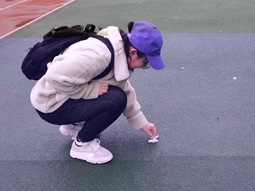 但在東操場的觀衆席上,密密麻麻地、認認真真地,是環工二班的同學們正在擦拭着滿是塵土與水痕座椅的身影。再轉睛一看,操場上有不少身影,站起、蹲下、站起、又蹲下,仿佛一隻隻螞蟻,匍匐着,虔誠着,對大地進行信徒的朝聖。