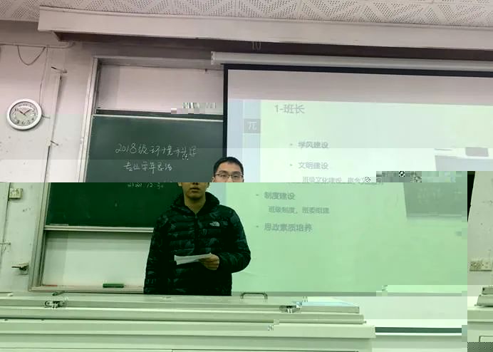 環境1班班長陳澤龍感謝了這一學年同學對班級各項工作的支持,總結了目前同學們的學習績點情況,并指出在平時的學習過程中,同學們遲到和缺勤問題比較嚴重
