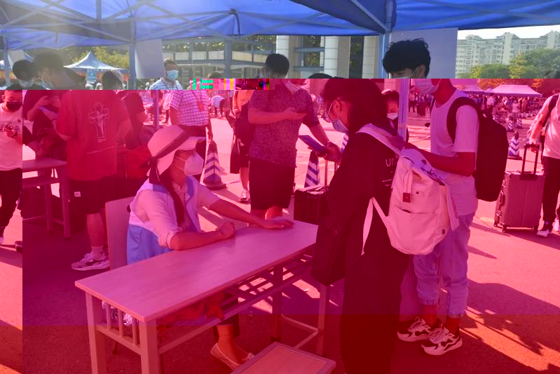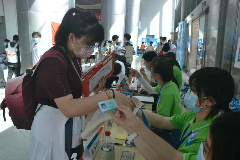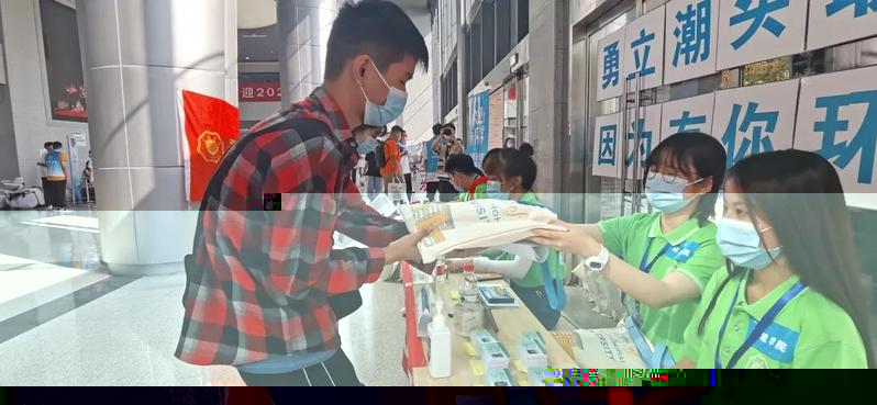 環境院的志願者們在南門門口開始了新生入學迎新活動。現場準備了礦泉水和各類防疫物資,志願者們滿懷一腔熱情,為新生引導路線并答疑解惑。