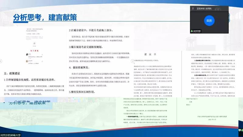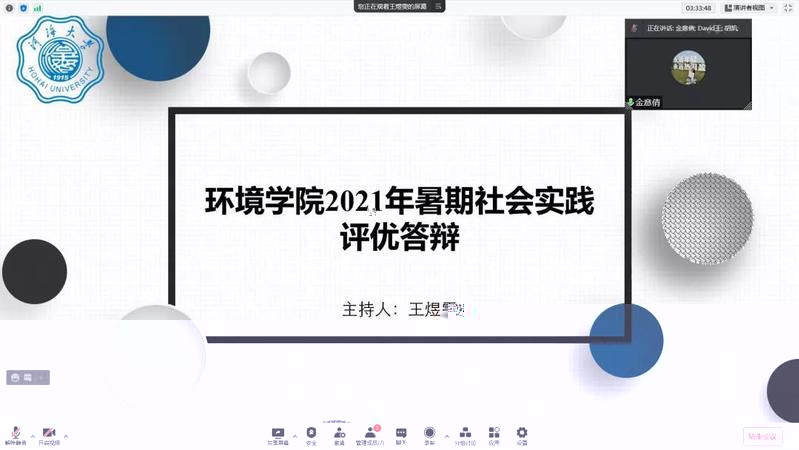 為推進落實伟德国际1946bv官网暑期“三下鄉”社會實踐活動總結工作,2021年9月15日下午,伟德国际1946bv官网舉行了2021年暑期實踐線上評優答辯。市政工程系胡凱老師,環境工程系王大偉老師,院團委書記兼20級輔導員金意倩老師、20級輔導員楊铮老師擔任評委。疫情的特殊情況給今年的社會實踐團帶來了機遇和挑戰。雖然大部分團隊的隊員都居住在不同的地方,給線下活動帶來了不便,但是實踐團使用了線上會議、網上問卷、就近走訪等多種途徑解決問題,并且順利地完成了實踐活動。線上答辯由團隊借助PPT形式進行實踐總結以及評委提問兩個環節組成。主持人王煜雯同學簡要地介紹了此次答辯的背景和評選标準後,答辯正式開始。