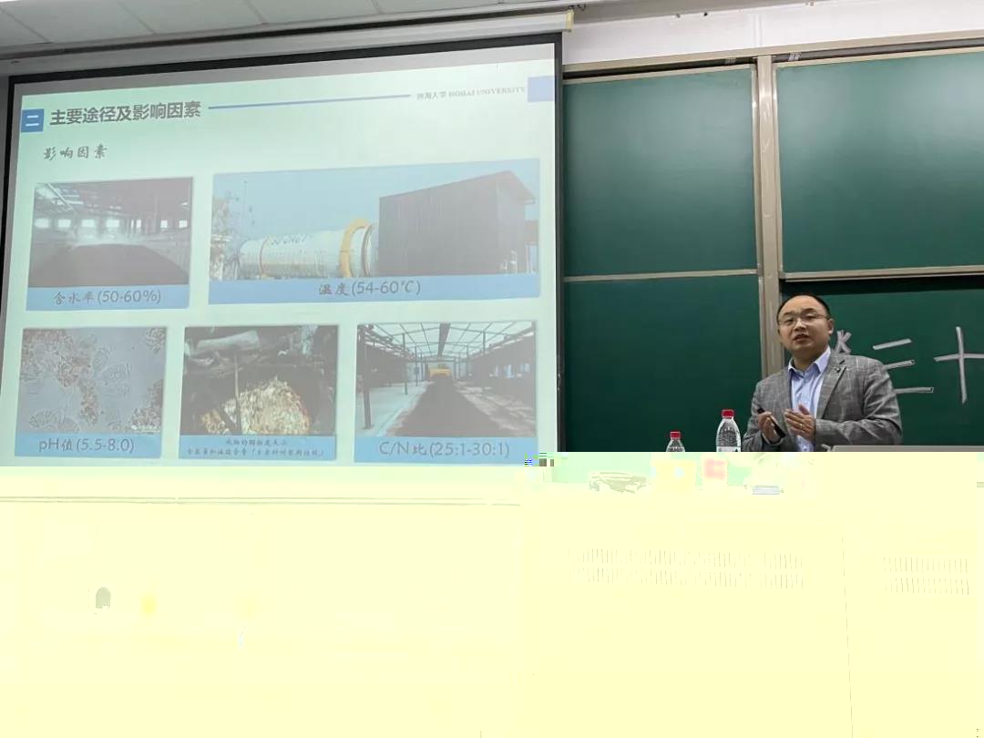 在多年的調查以及研究後,羅教授将當前有機廢棄物資源化的方法逐個進行講解并分析優缺點,例如廢物燃燒處置;好氧堆肥處置;熱解處置以及對有機物進行生化降解。羅教授用生活中的例子啟發在座同學,各位河海學子頻頻點頭,表示受益匪淺。
