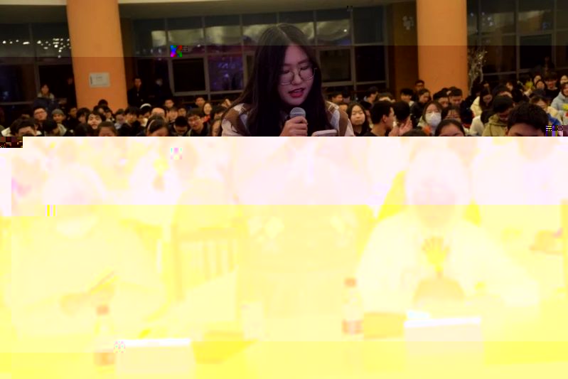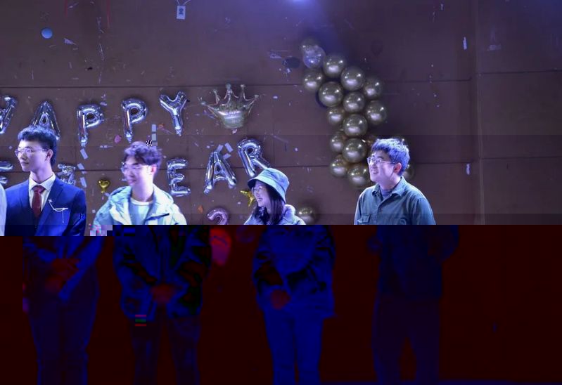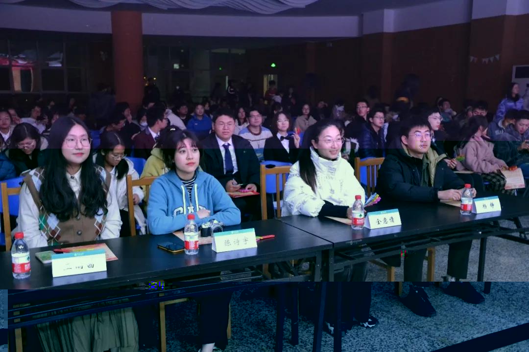 在休場期間,各種小遊戲接踵而至,在座各位同學積極參與,全場笑聲連連。聽歌識曲遊戲中,各位同學猜中歌名後還需要演唱歌曲。王雨茜老師也獻歌一曲,引得同學們一陣歡呼;搶椅子遊戲,同學在轉圈的同時緊盯闆凳,感受那股腎上腺素飙升的感覺;“正話反說”遊戲,楊铮老師和同學們急中生智,高速運轉大腦;蒙眼吹氣球遊戲,王雨茜老師與陳詩宇老師以及參加的各位同學兩兩分組猛吹氣球,為晚會增添了幾分喜慶與歡愉。
