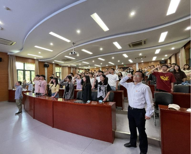 最後畢業生黨員們重溫入黨誓詞。“我志願加入中國共産黨,擁護黨的綱領,遵守黨的章程……為共産主義奮鬥終身,随時準備為黨和人民犧牲一切,永不叛黨!”铿锵有力的宣誓聲響徹整個會議室,喚醒和激發了各位黨員内心深處的黨性觀念,也鞭策和激勵了各位畢業生黨員在未來的道路上堅定理想信念,恪守道德底線,時刻做到“自重、自省、自警、自勵”。