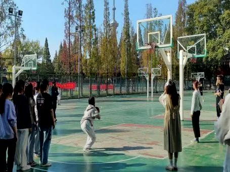 在中場休息時間,每隊選出人數相當的女生進行投籃,每名女生2次投籃機會,這将算在最終的比賽比分裡。環科1班與資環2班各進1球,雙方加分持平,最終兩隊比分為16:6。環二聯隊和市政聯隊則分别進了1球和2球,最終兩隊比分為24:23。