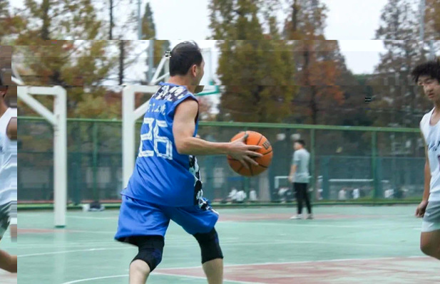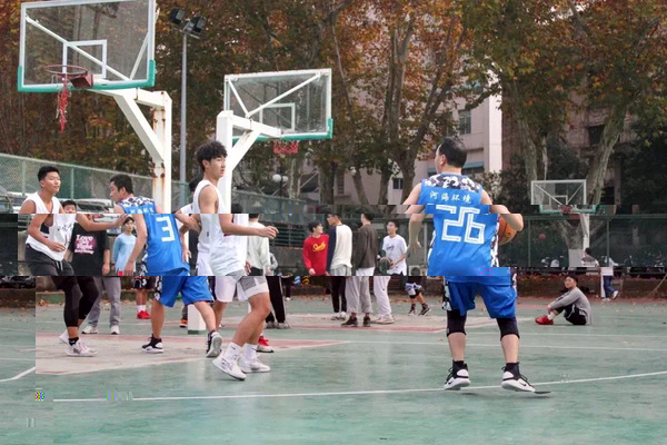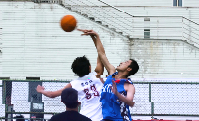 學生隊開始反擊,通過幾次犯規罰球和三分球入網将比分迫近至4分。學生隊青春活力,教師隊穩健從容。三秒區内,他們拼搶每一個籃闆,全力拿下每一次封蓋。他們的行動向每一位觀衆展示着籃球精神,即使處于劣勢,也要寸土必争,擋拆配合,包夾防守,隊友的給力配合讓比賽更加精彩。雖相對落後,學生隊多次輪換交替進攻,毫不氣餒。至上半場比賽結束,比分為44:39,學生隊将分差迫近至5分。