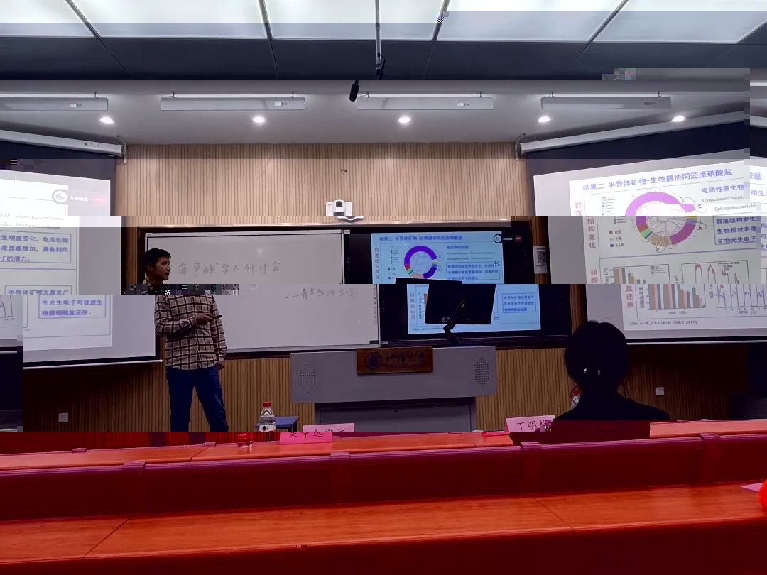 最後與大家進行分享的是20級環境科學與工程專業碩士生錢昱棟,錢昱棟就“電加熱-膜蒸餾的過程強化與控制”與同學們進行了簡單的交流與溝通。
