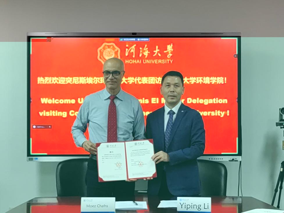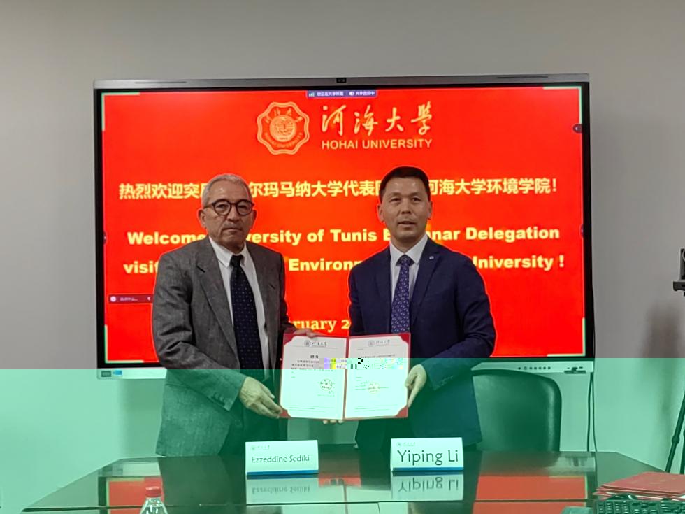 随後,李一平院長和突尼斯埃爾瑪馬納大學校長Moez Chafra教授正式簽署伟德国际1946bv官网與突尼斯埃爾瑪馬納大學之間的合作協議,并聘請Moez Chafra教授、Ezzeddine Sediki教授、Lobna Zakraoui教授、Jamel Neji教授、Essaïeb HAMDI教授為伟德国际1946bv官网客座教授。該協議旨在推動兩所學校在教育、科研等領域的交流與合作,尤其是在環境科學與工程領域的共同發展。