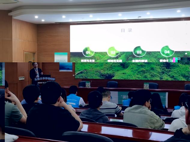 講座伊始,馮骞老師以生動的語言向學生們介紹了“世界地球日”的由來和意義。他提到,地球是我們共同的家園,保護地球環境就是保護我們自己的生存空間。馮老師從天地人的和諧關系展開,引入儒家、佛家、道家等觀念,為大家介紹從古至今人與自然的關系,告訴大家我們每個人都應該積極參與到環保行動中來,為地球的未來貢獻自己的力量。