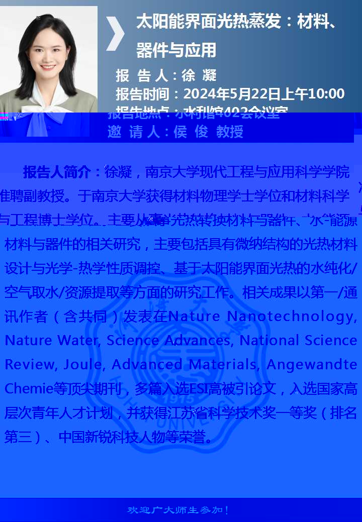 兩山講堂學術報告:太陽能界面光熱蒸發:材料、器件與應用