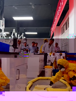 演習環節二:危險化學品洩漏應急演練。模拟了一起濃硫酸洩漏的突發事故。演練現場,一名學生上課時未按實驗室安全規範的要求做好個人安全防護,在實驗過程中不慎将濃硫酸灑落濺到眼睛和身體上,導緻洩漏事故發生。實驗老師立即确認現場受傷學生情況,并進行緊急噴淋。同時指揮學生快速有序撤離,封鎖實驗室防止危害擴散。在學院安全負責人的指揮下,迅速啟動應急響應機制。學院應急處置小組迅速抵達并使用專業工具按流程對洩露現場進行清理和恢複,将事件影響控制在最小範圍。