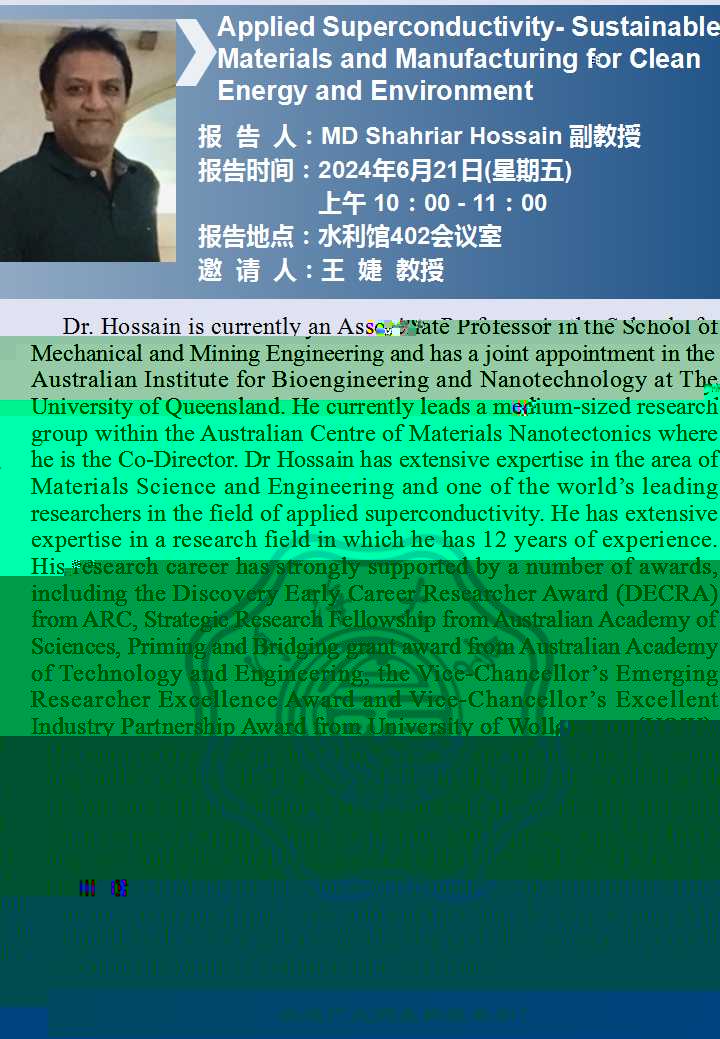 伟德国际1946bv官网學術報告:Applied Superconductivity- Sustainable Materials and Manufacturing for Clean Energy and Environment